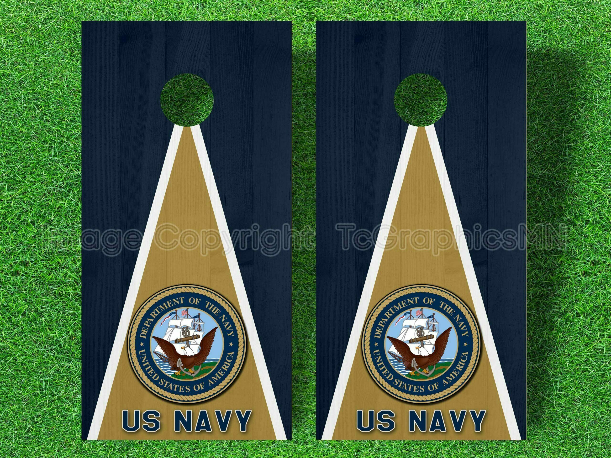 Our US Navy Cornhole Decals are the perfect addition to any tailgate, wedding, backyard bbq or party! Make your boards stand out!